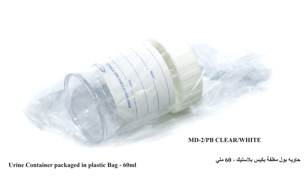 حاويه بول مغلف بكيس بلاستيك ، 60 ملي MD-2/PB CLEAR-WHITE (8178)