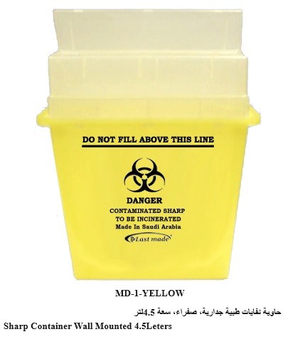 حاوية نفايات طبية جدارية، صفراء، سعة 4.5لتر MD1-YELLOW (9309)