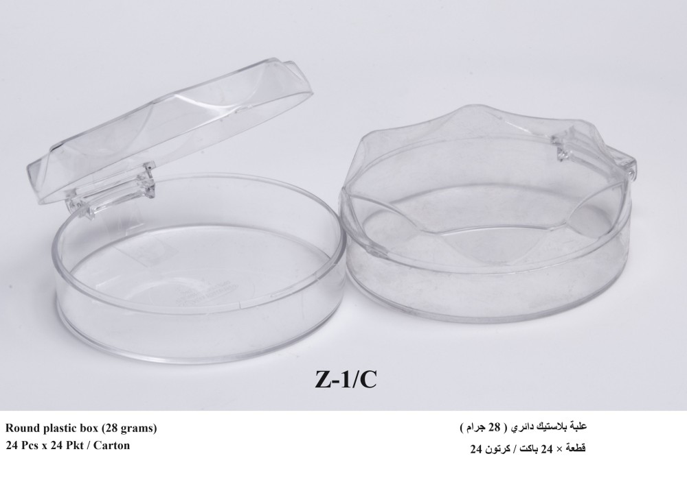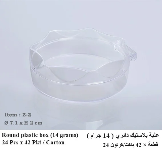علب دائرية شفافة للمعمول و الزعفران و اللبان و الاستخدامات الأخرى السعة: 40 جرام الكرتون=18 حبه في 24 رزمة الرمز: Z-5 - CLEAR - 18 Pcs x 24 Pkt / Carton