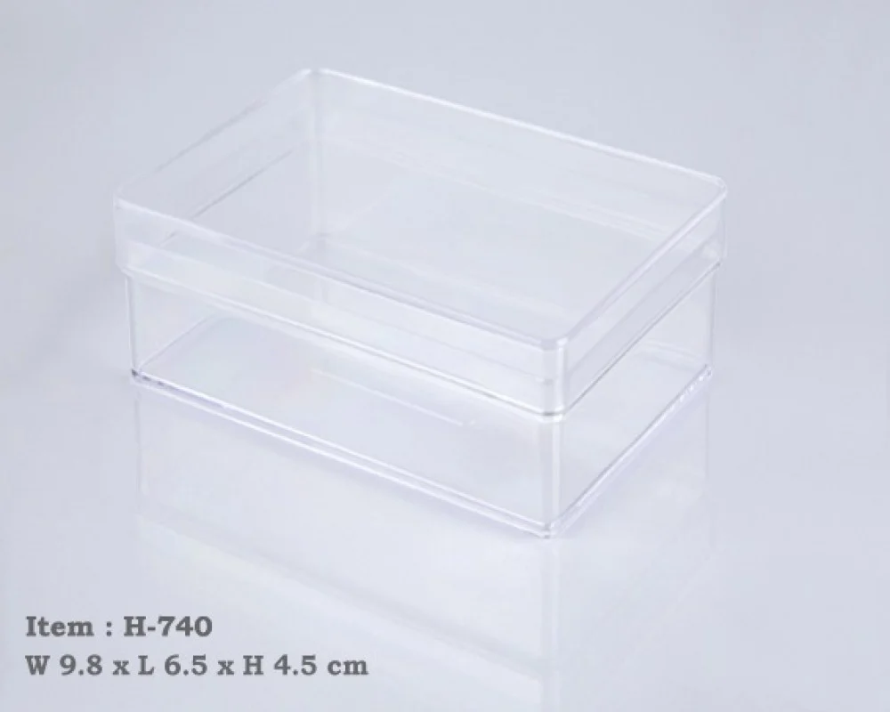علب مستطيلة شفافة الحجم: صغير الكرتون= 24 حبة في 12 رزمة الرمز: H-740 - CLEAR - 24 Pcs x 12 Pkt / Carton