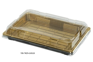 حاوية سوشي - مستطيلة / صينية أسود/ذهبي - غطاء شفاف TH-7025-GOLD(11603)