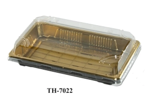 حاوية سوشي - صينية مستطيلة باللون الأسود/الذهبي وغطاء شفاف TH-7022(11408)