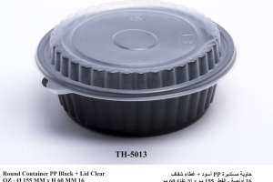 حاوية مستديرة PP أسود + غطاء شفاف TH-5013 (12196)